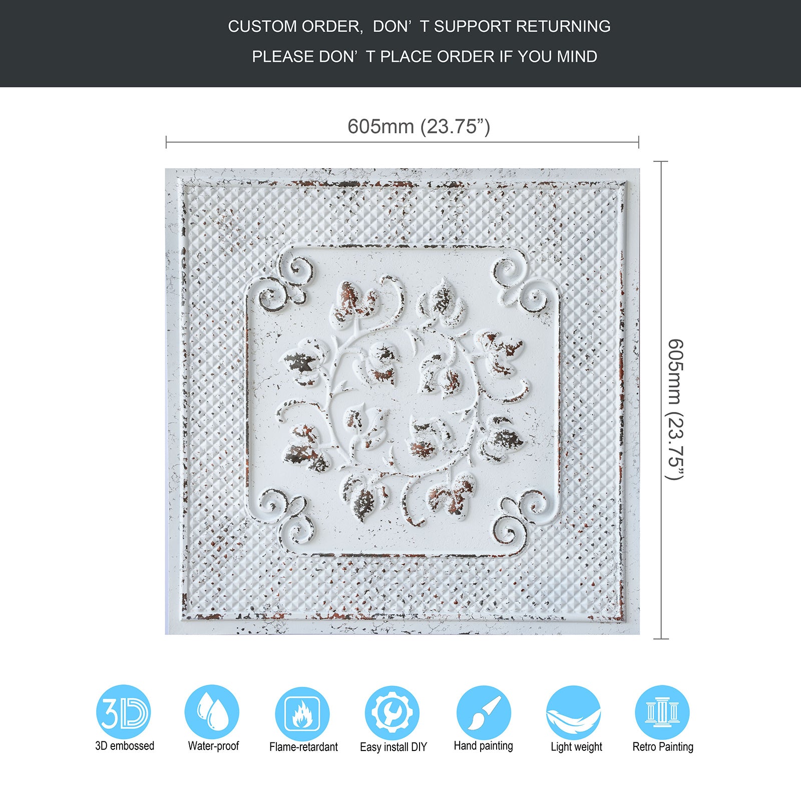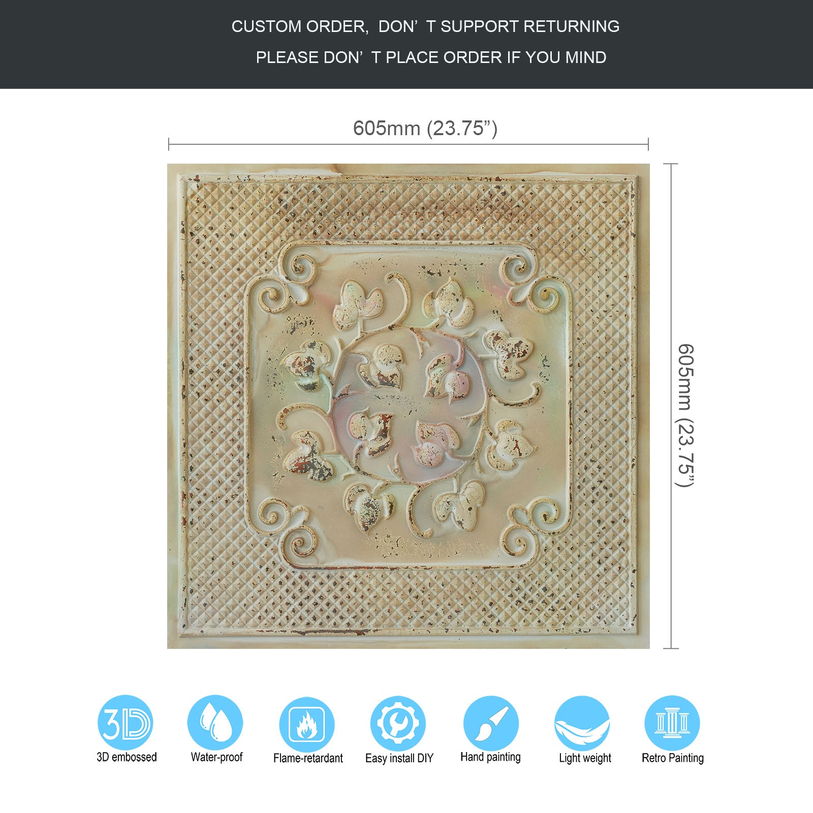Dimension:23.75" x 23.75"(or 605mmx605mm)