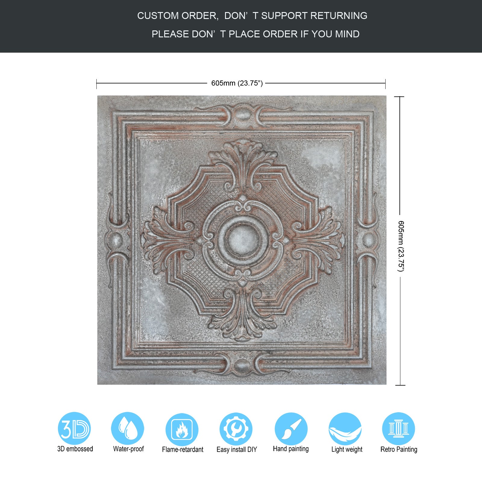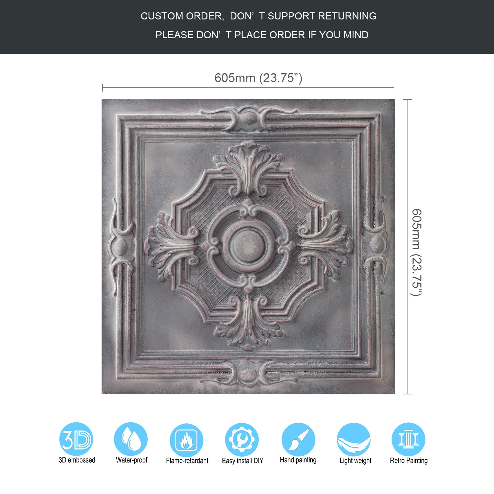 Dimension:23.75" x 23.75"(or 605mmx605mm)