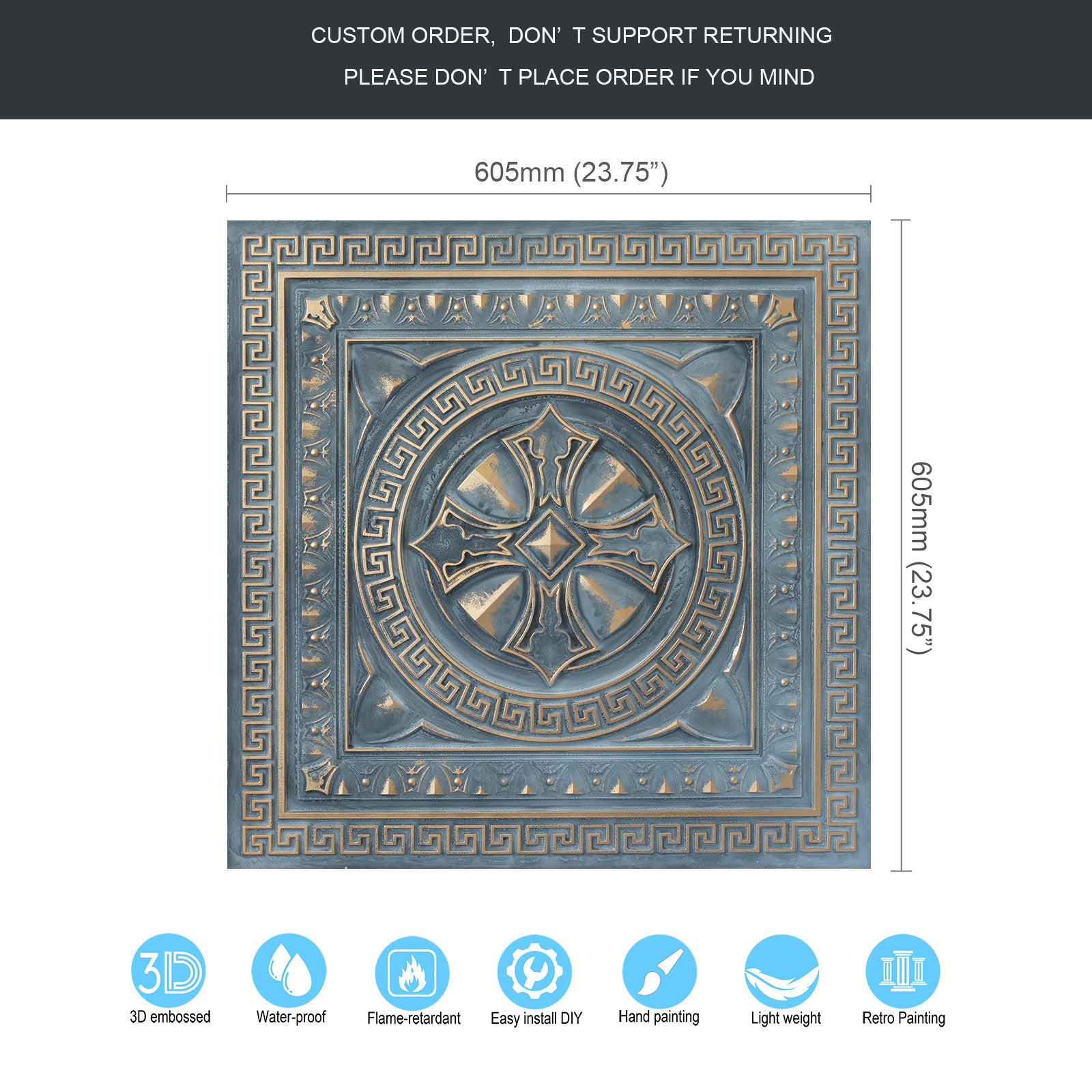 10Pcs Faux Metal Ceiling Tiles for Stylish Kitchens, Bedrooms and Interior Renovation PL01