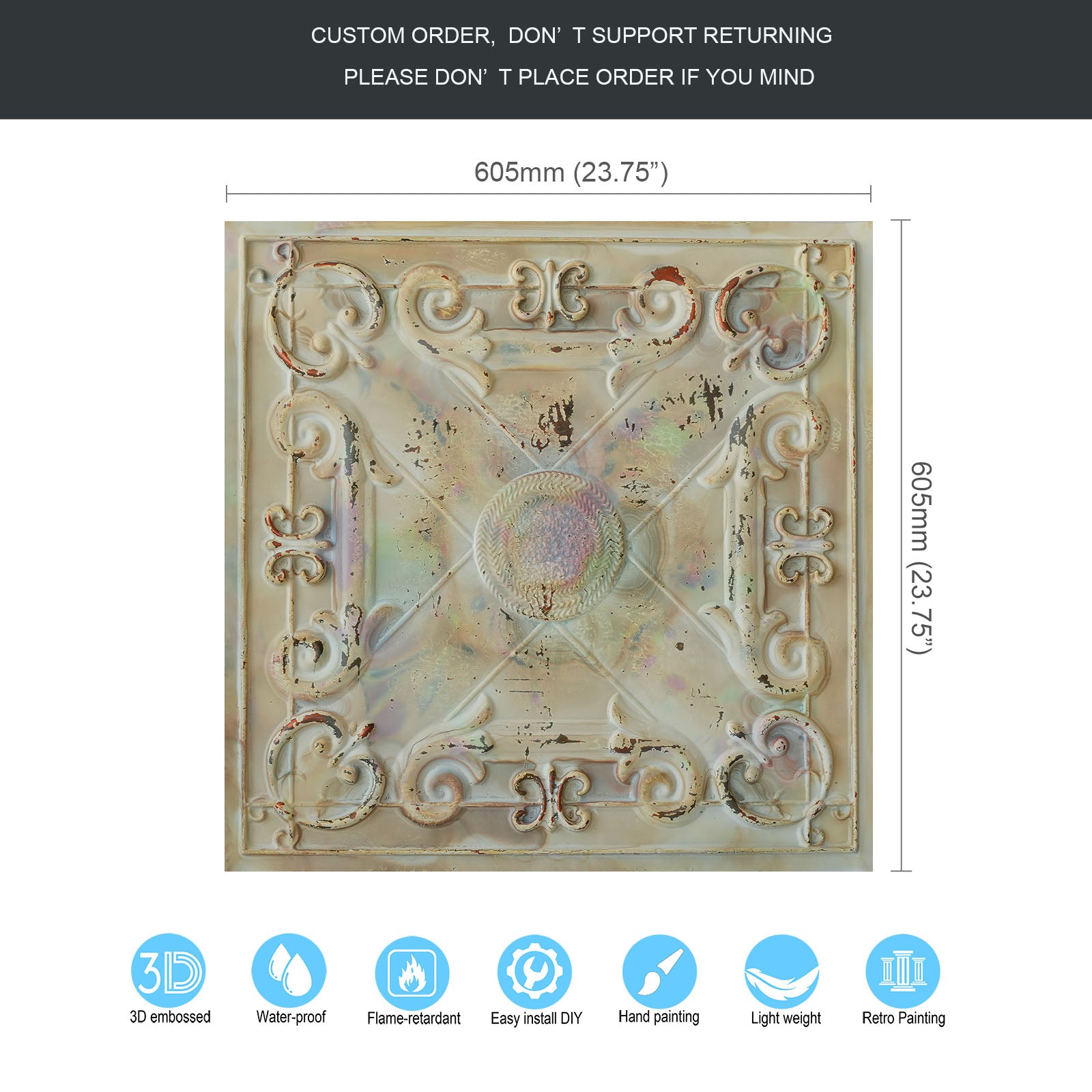 Dimension:23.75" x 23.75"(or 605mmx605mm)