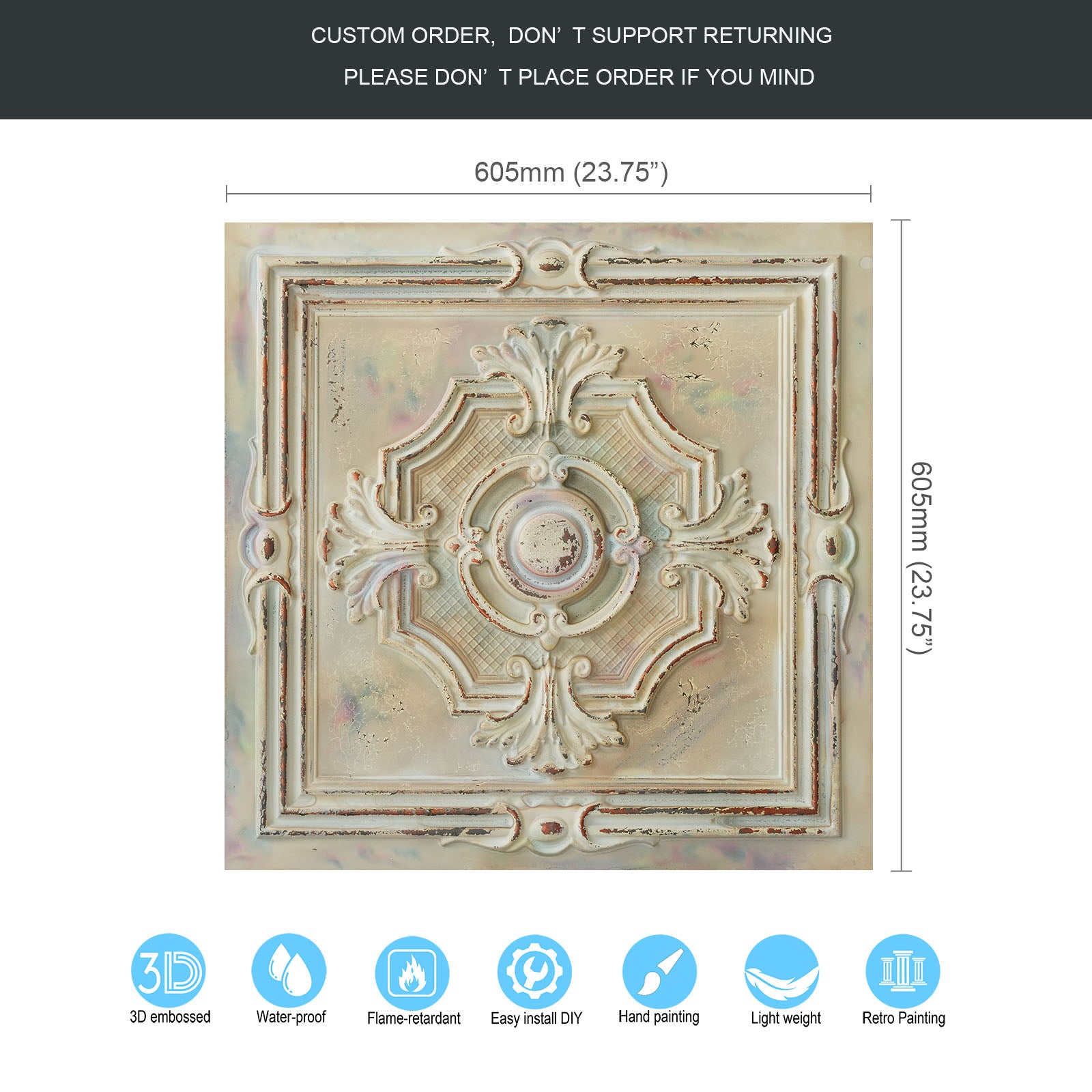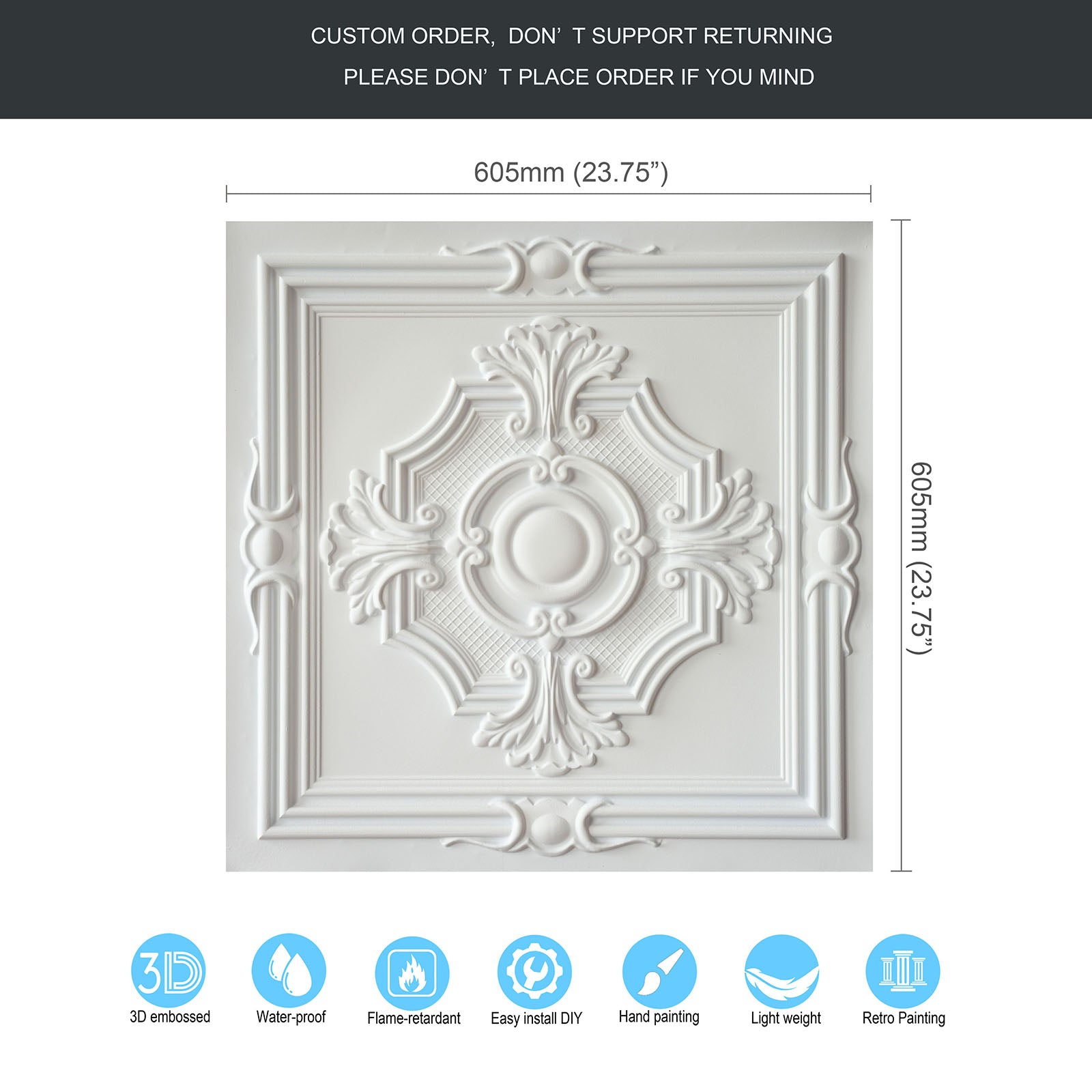 Dimension:23.75" x 23.75"(or 605mmx605mm)