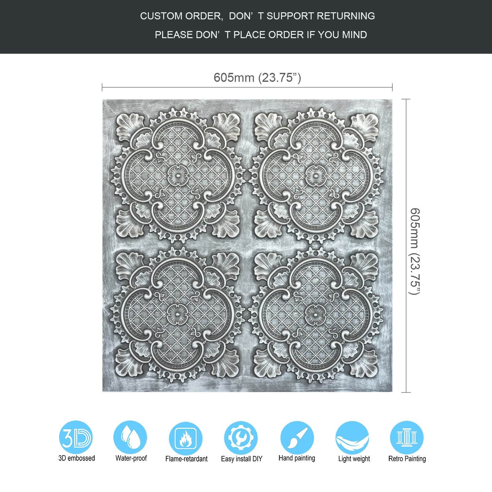 Dimension:23.75" x 23.75"(or 605mmx605mm)