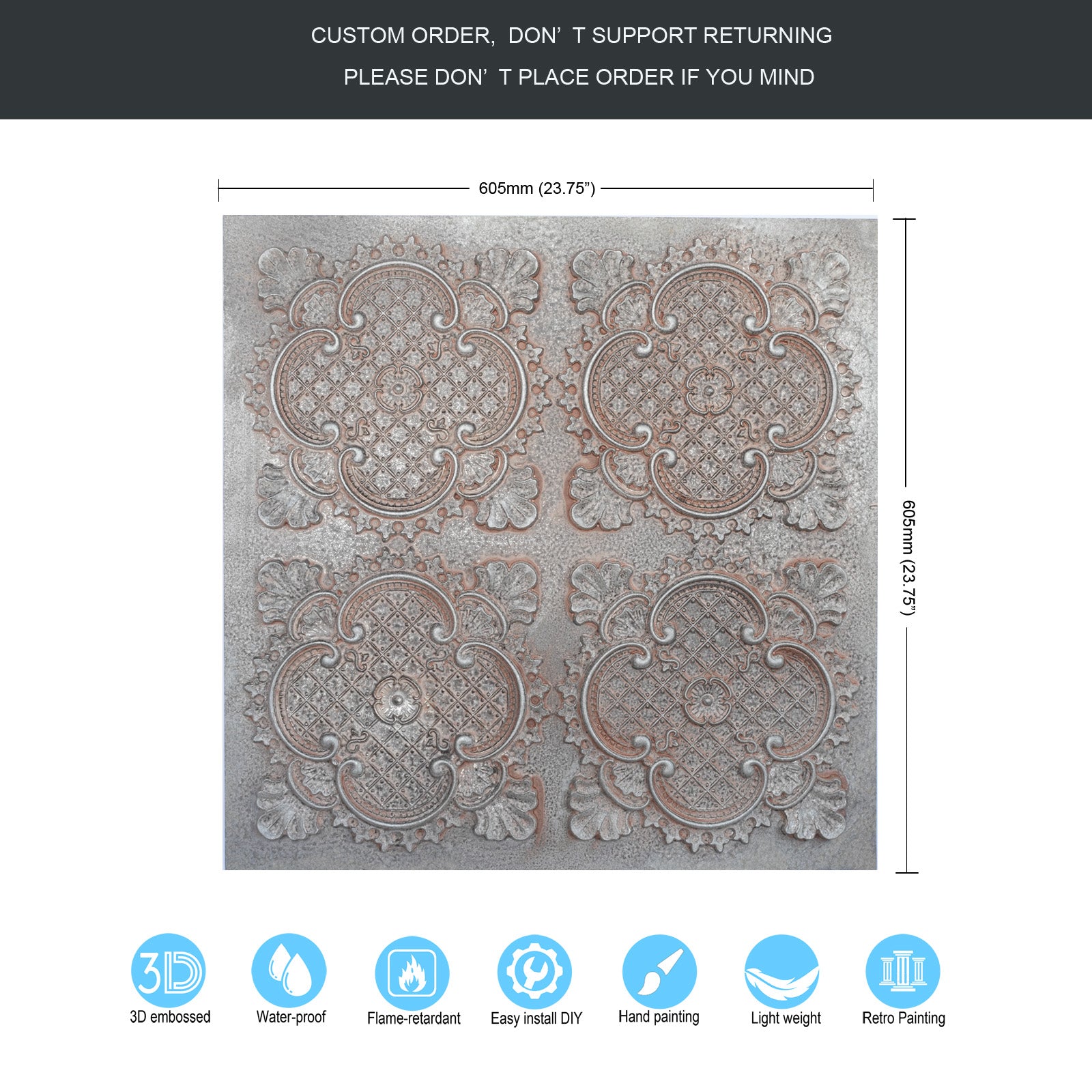 Dimension:23.75" x 23.75"(or 605mmx605mm)
