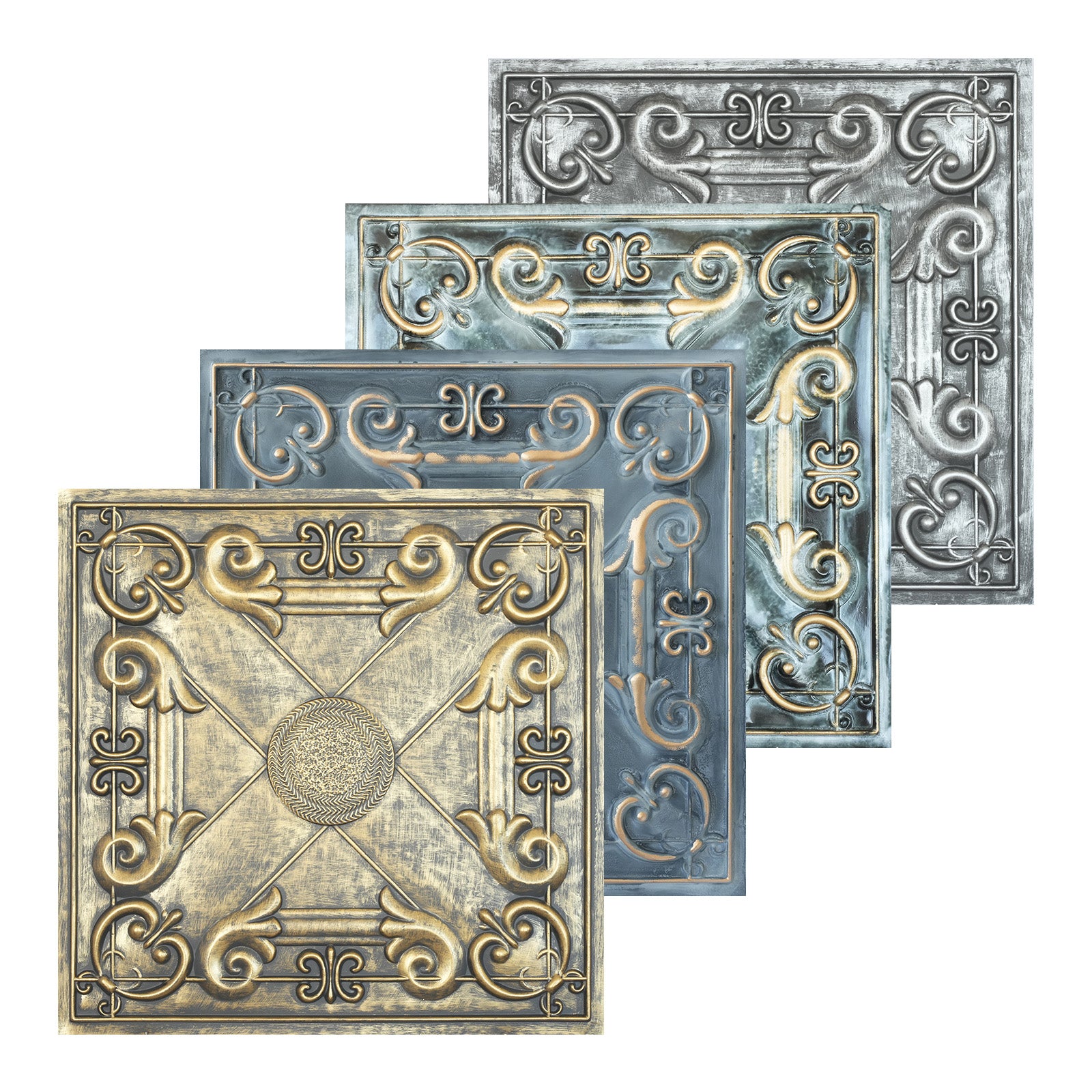 PL22 Ancient gold ceiling tiles used at light luxury restaurantPL22 Smoked gold ceiling tiles used at light luxury restaurantPL22 Bluish gold ceiling tiles used at literary book barsPL22 Antique tin ceiling tiles used at literary book bars