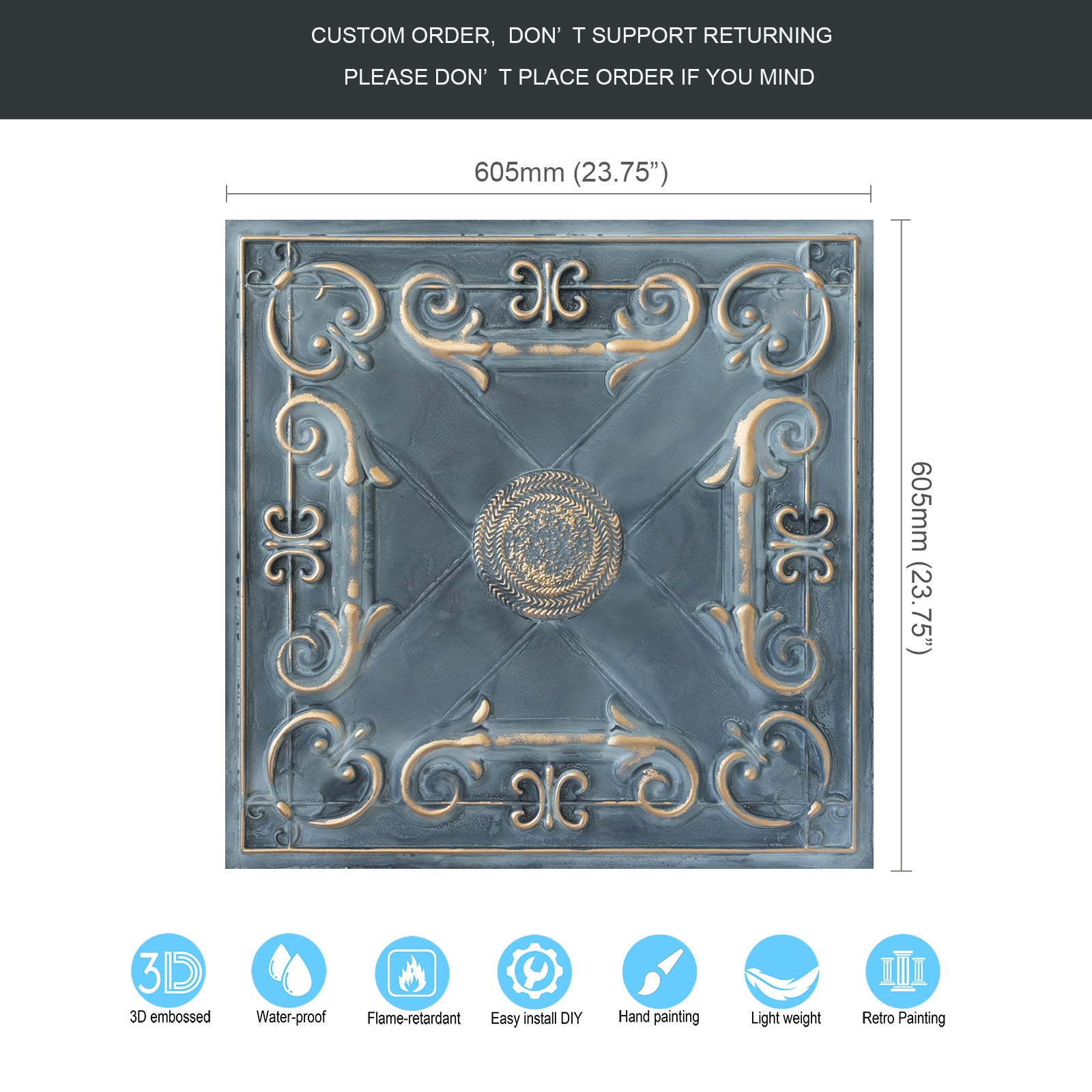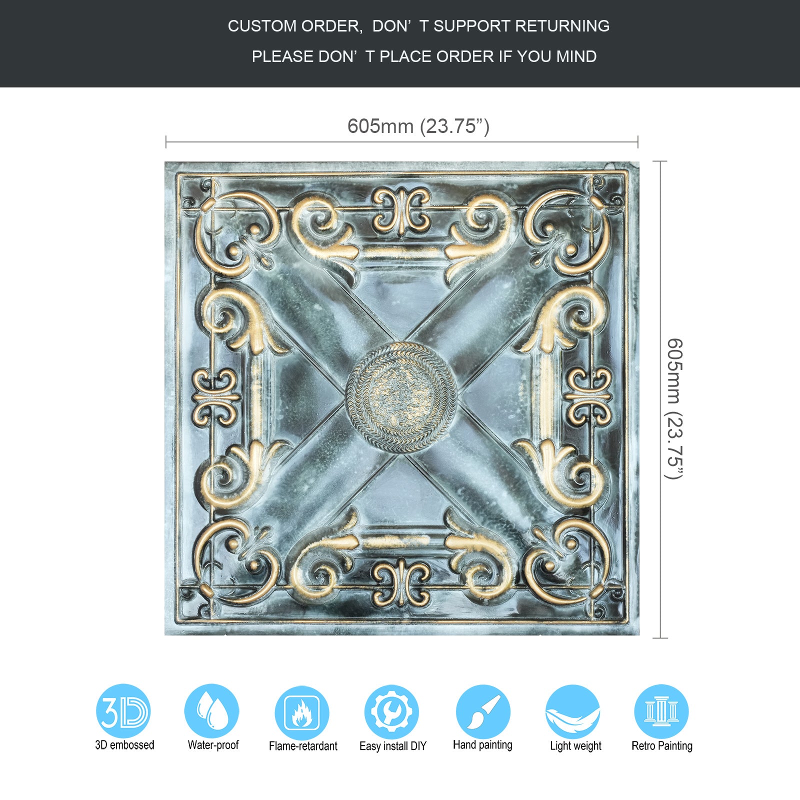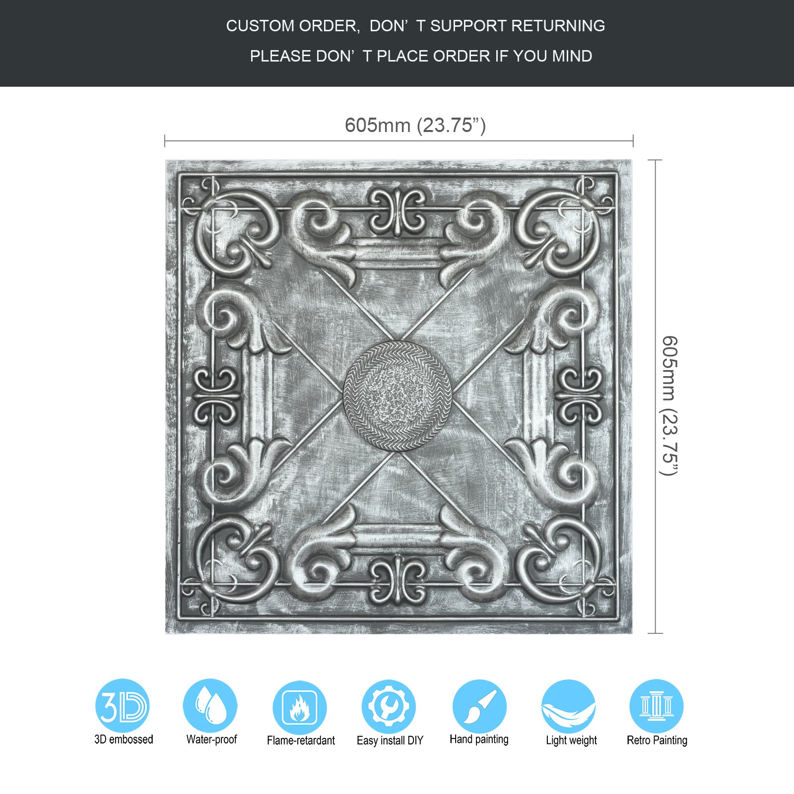Dimension:23.75" x 23.75"(or 605mmx605mm)