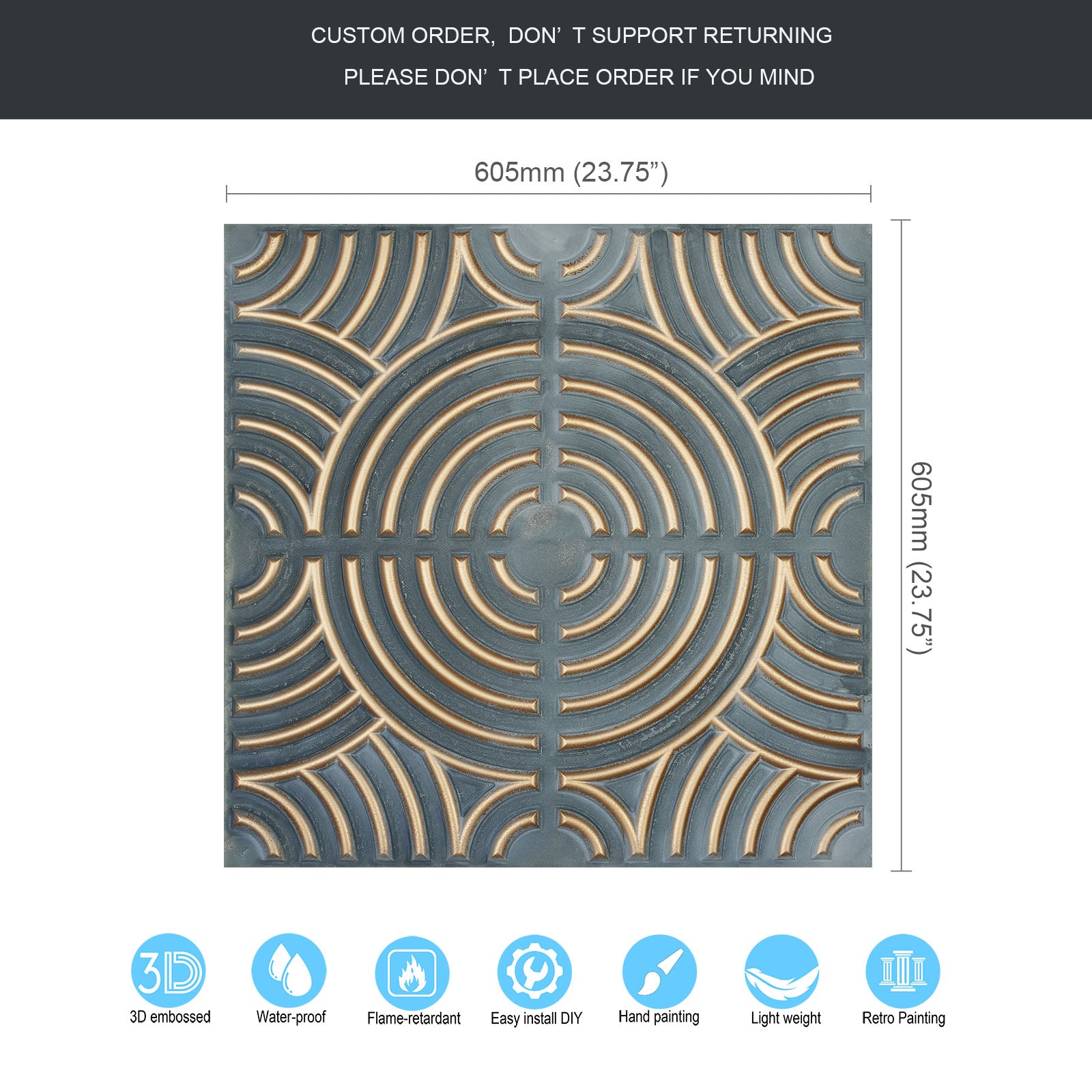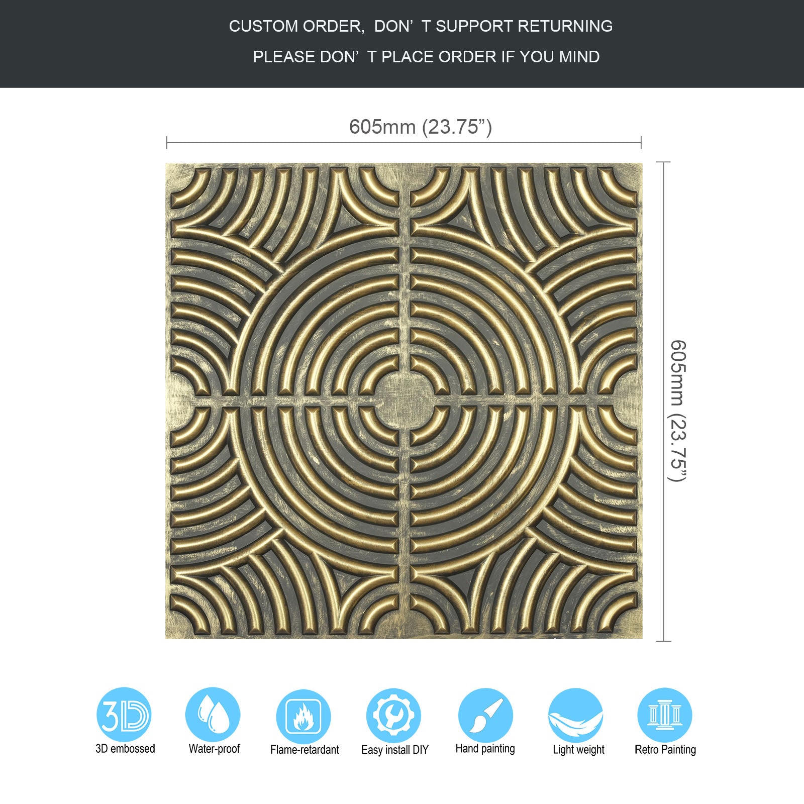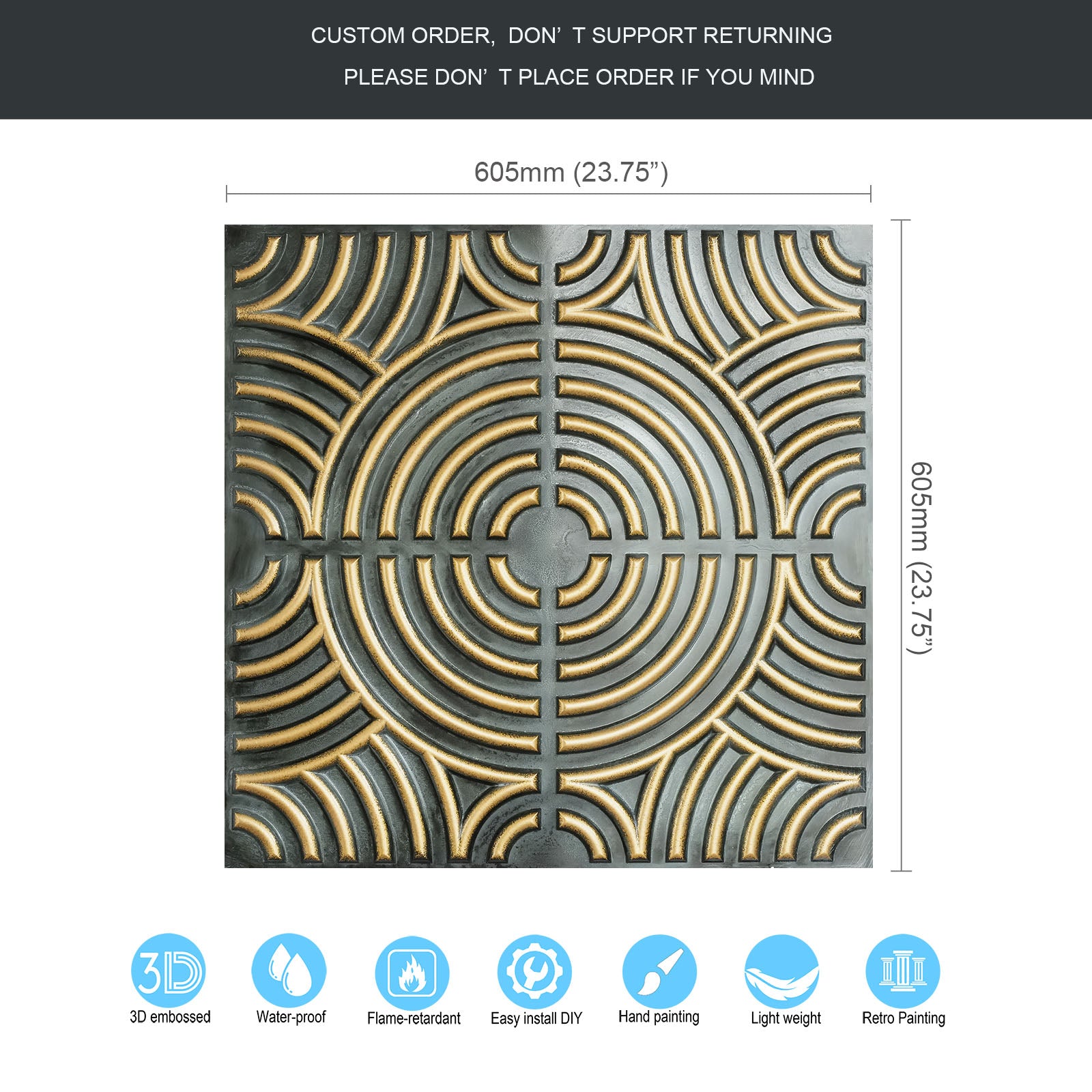 Dimension:23.75" x 23.75"(or 605mmx605mm)