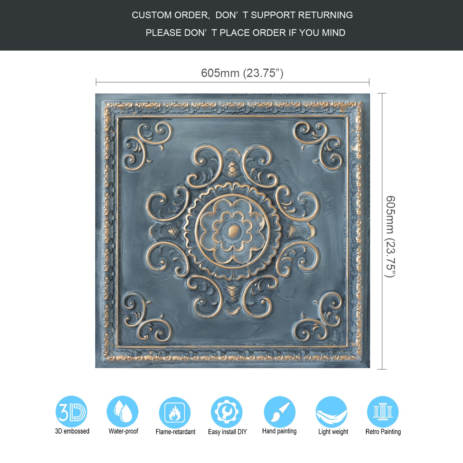 In the world of interior design, our decorative faux tin ceiling tiles have become transformative elements injecting vitality and personality into mundane spaces, serving as ideal catalysts for decoration enhancement. The key lies in harmonizing designs and colors with existing elements—walls, floors, and furniture—offering customized choices for interior aesthetics.
