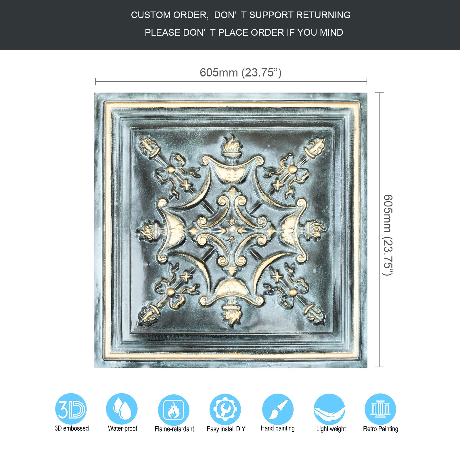 10Pcs Antique Ceiling Tiles for Premium Hotels, Mansions, Villas and Classic Dining Rooms PL07